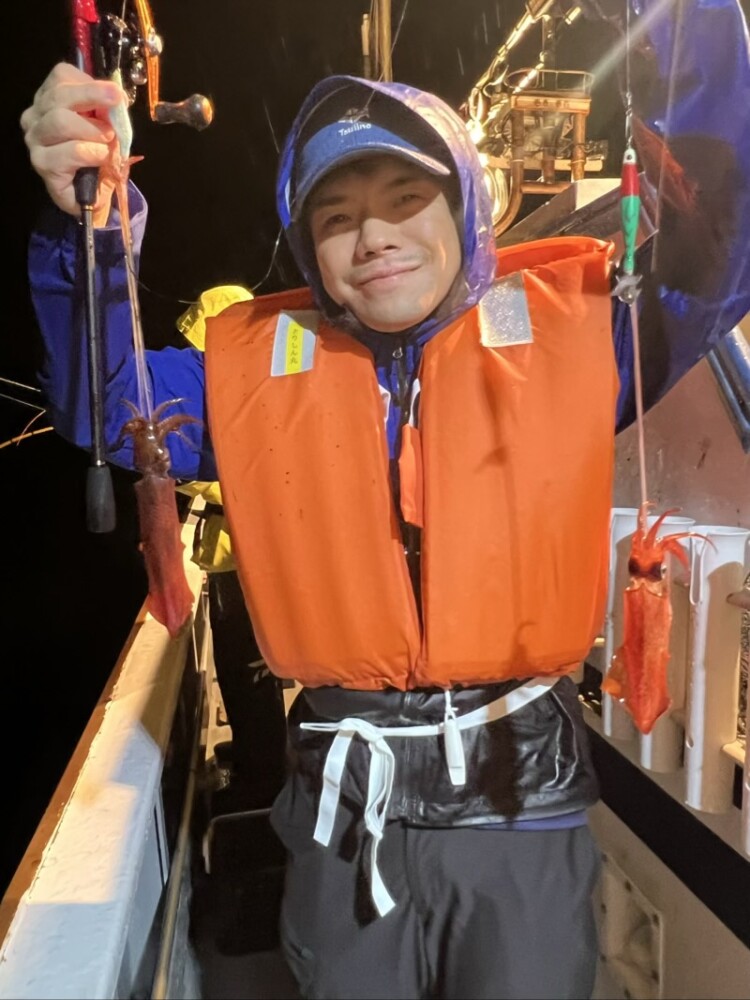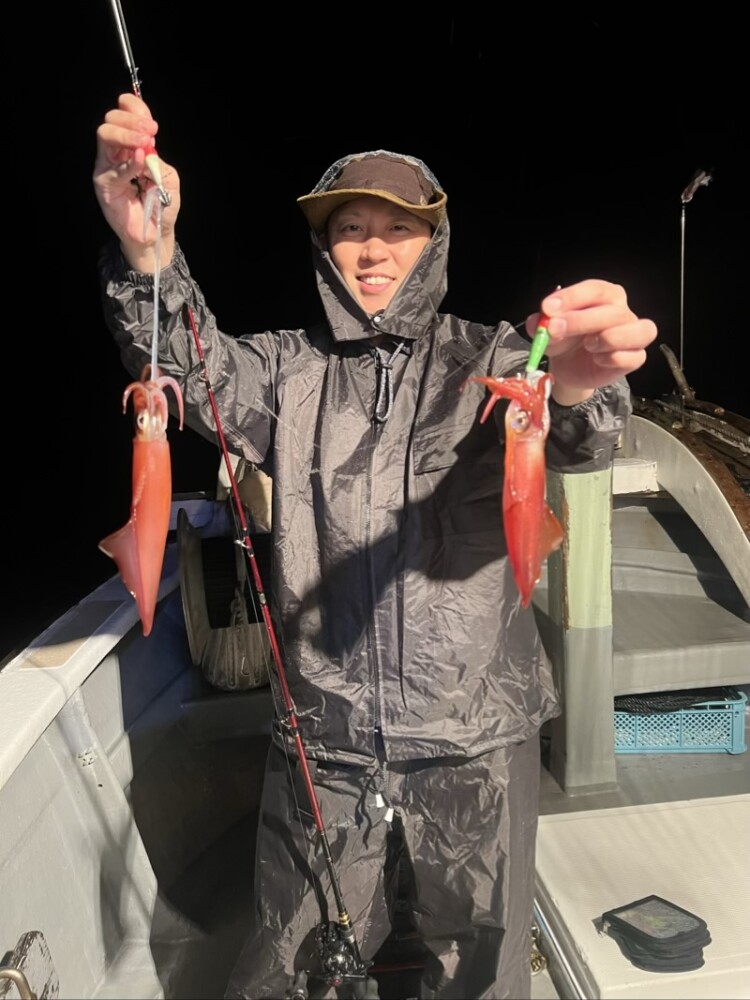 やや遅れてポロポロ釣れ出し、今度は釣れたイカでイカタイ!